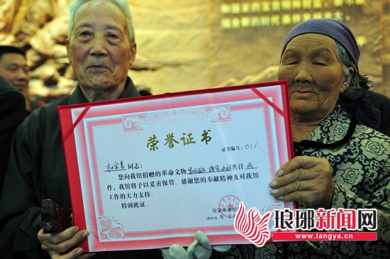 琅琊新闻网4月26日讯 积极关注建设情况,踊跃捐赠革命文物,在全市人民的大力支持下,26日沂蒙革命纪念馆正式面向社会开放。在开馆仪式上,市委书记、市人大常委会主任张少军在致辞中向建设者和捐赠文物的市民表达了衷心的谢意。当天,30余位捐赠代表也收获了属于自己的荣誉,沂蒙革命纪念馆为他们分别颁发了荣誉证书。(详细)
